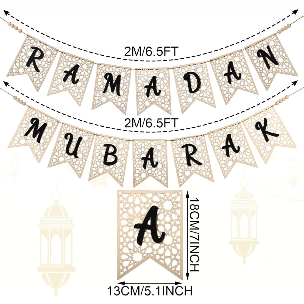 Welcome the blessed month with our Ramadan Mubarak Wooden Bunting, a Ramadan décor piece designed to bring faith, simplicity, and celebration into your home.