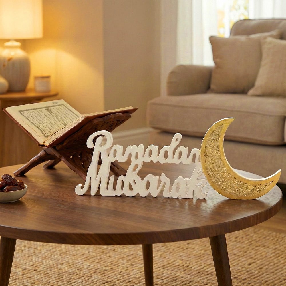 With its Ramadan greeting and handcrafted wooden finish, this piece adds visual charm and spiritual warmth to iftar tables, dining spaces, and festive gatherings.